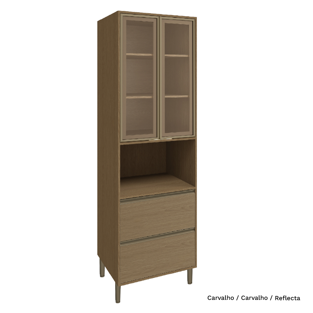 Armário Torre Quente de Cozinha 2 Portas Vidro 70cm Rimo Vitória Carvalho - Reflecta